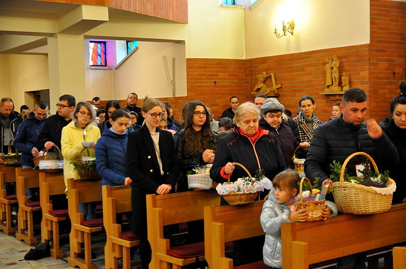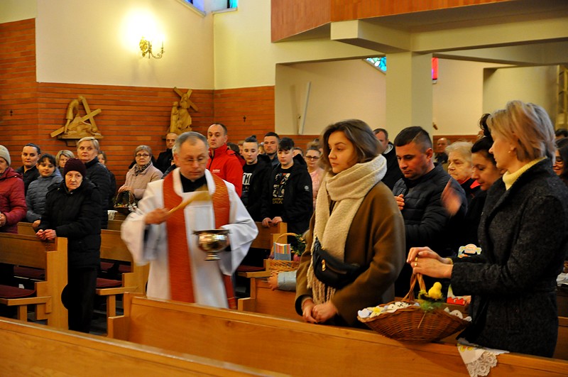 W tym dniu do godzin popołudniowych kapłani święcą pokarmy. W Polsce lud przynosi je w przyozdobionych koszyczkach. W innych krajach, np. we Włoszech, kapłani chodzą po domach, otrzymując w zamian ofiary. W Polsce również kiedyś panował ten zwyczaj. Zniesiono go z powodu nadużyć. Tak o nich np. pisze biskup płocki Załuski w roku 1733: "Upowszechnił się zwyczaj święcenia pokarmów w Wielką Sobotę po domach osób świeckich, który, aczkolwiek sam w sobie pobożny i chwalebny, dla nadużyć jednak cierpianym być nie może. Proboszczowie w dniu po złożeniu Chrystusa w grobie zamiast poświęcić ogień i wodę, słuchać spowiedzi itp., wszystko to opuściwszy, biegają po wsiach i domach, i często ledwo zdążą na jutrznię, a niekiedy niezdolni są nawet do odprawienia Mszy świętej ze zgorszeniem ludu i zniewagą stanu duchownego. Dlatego też niech wyłożą wiernym, iż nie jest koniecznością wszystkie pokarmy poświęcać, lecz dosyć niektóre z nich, choćby tylko sam chleb, a ten z łatwością może być przyniesiony do drzwi kościelnych i tam błogosławiony". O. Newerani pisał w roku 1739 w "Ozdobie Kościoła Katolickiego": "Święcą baranka, przypominającego prawdziwego Baranka-Chrystusa i Jego triumf, dlatego też zwyczajnie chorągiewki na pieczonym baranku stawiają. Święcą mięsiwa, którego się Żydom pożywać nie godziło, na dowód, żeśmy przez Chrystusa Pana z jarzma Starego Zakonu uwolnieni... Święcą chrzan na znak tego, że gorzkość męki Jezusowej tegoż dnia w słodycz się nam zamienia, i dlatego też przy tym masło święcą, które znaczy tę słodycz. Święcą na ostatek i jaja na dowód tego, że jako kokosz dwojako niejako kurczęta rodzi, raz niosąc owoc, drugi raz go wysiadując, tak przez Chrystusa dwa razy jesteśmy odrodzeni".