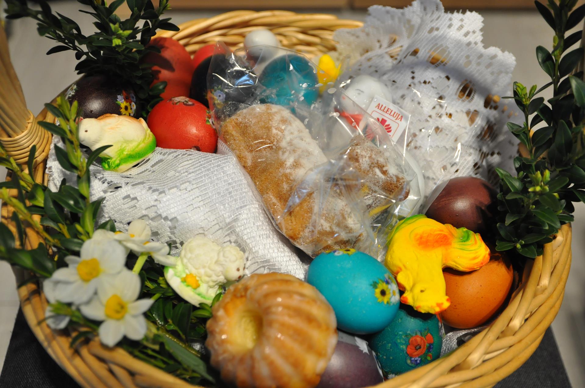 Wśród rzeczy w koszyku świątecznym nie może zabraknąć pisanek (kraszanek). Te jajka, często artystycznie zdobione, wyobrażają zwycięstwo życia nad śmiercią, bo z niego wychodzi kurczę. Dawniej nie wolno było spożywać w Wielkim Poście również nabiału i jaj. Dlatego tak chętnie niesiemy je do poświęcenia. O zwyczaju pisanek wspomina już w wieku XII bł. Wincenty Kadłubek w swojej Kronice.