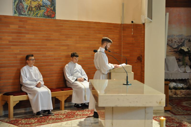 Po odbytej naradzie Sanhedrynu jego członkowie rozeszli się. Pana Jezusa oddano na pastwę sług świątyni i straży. Dla przypodobania się swoim panom, na ich oczach znęcali się nad Chrystusem, bijąc Go i policzkując, plując na Niego na znak pogardy. Potem odprowadzono Pana Jezusa do więzienia - piwnicy, gdzie w dalszym ciągu znęcano się nad Nim.